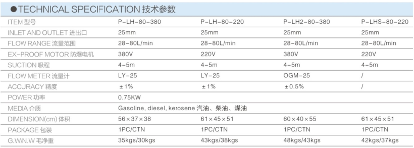 Thông số kỹ thuật: Bơm xăng dầu đồng bộ P-LH-80-380
